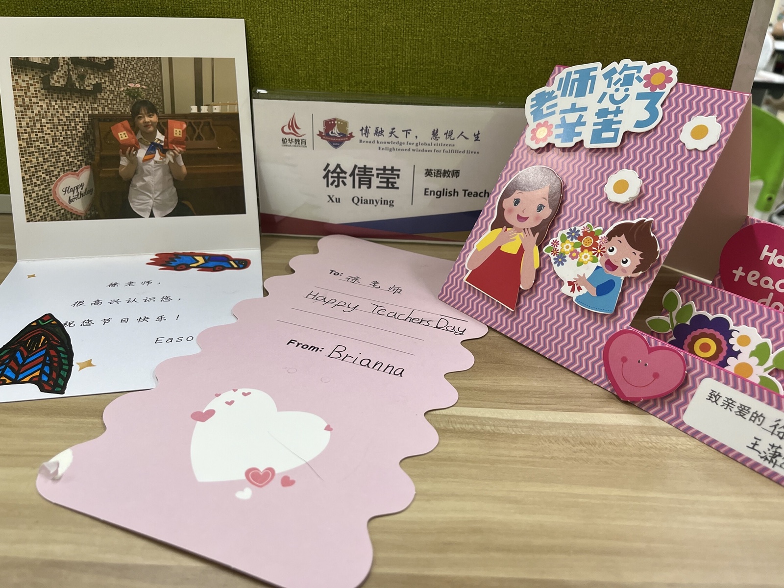 来自学生的节日问候。本校初一的新生,在教师节之际纷纷回小学与学弟学妹们向老师们送上祝福,一张张灿烂的笑脸、一封封朴素的贺卡,都来自孩子们心底对老师的爱和尊敬。