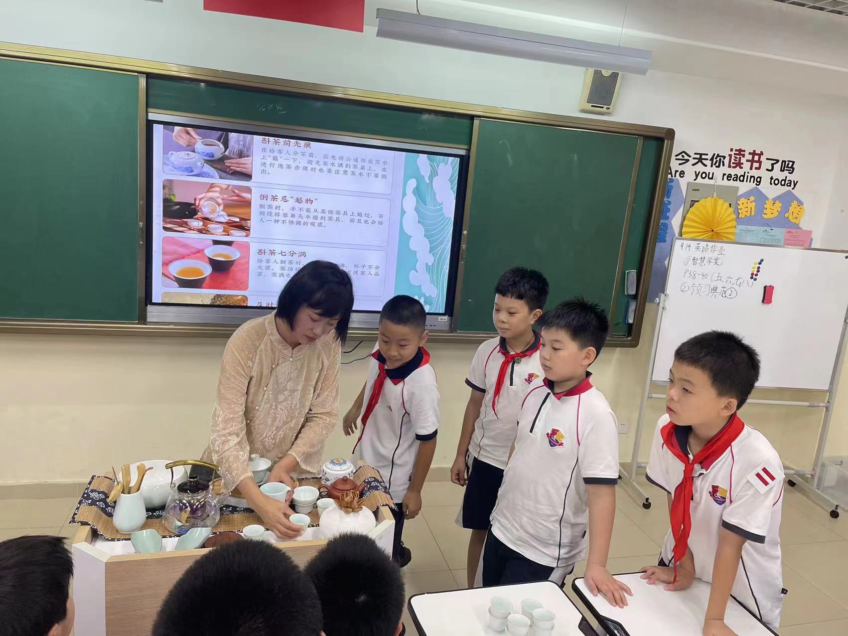 茶文化是本学期五(5)班的主要文化主题之一,茶道礼仪与中华礼仪一脉相承。同学们关于茶文化的研学之旅也在如火如荼的进行着。你瞧,同学们组成的茶文化研学小分队那认真的模样:他们在沏茶、敬茶时,以茶润心,事茶养礼,在潜移默化中学会了专注、恭敬、精俭、尊敬自然。