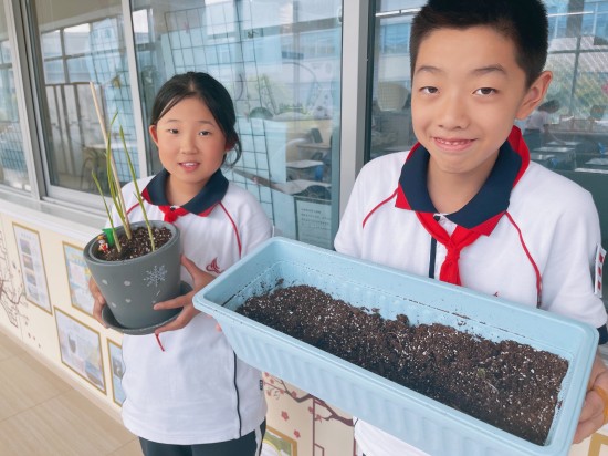 孩子们种植了大蒜、辣椒、小葱、萝卜……有的已经丰收,有的还在茁壮成长。灵感是在劳动中产生的,在这个过程中,他们学会了观察,