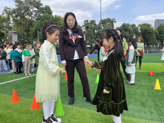 活动开始,同学们斗志昂扬,摩拳擦掌,期待与他们的新朋友们一起游戏。老师们精心准备了5轮游戏,不仅需要同学们发挥自己的运动能力,而且更注重团结协作。操场上,加油声、呐喊声此起彼伏。瞧,在hop around环节中,他们奋力追赶,就像一只只可爱的小兔子,蹦蹦跳跳地迎接自己的同学。
