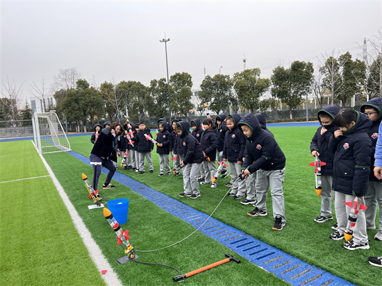 终于做好了,大家一起排队到操场准备“发射火箭”。虽然天气有点冷,爸爸妈妈穿的衣服并不厚,但丝毫没有松懈,放好装置、打气、发射……看着一支支火箭升空,孩子们兴奋的叫起来,爸爸妈妈脸上也露出了欣慰的笑容。