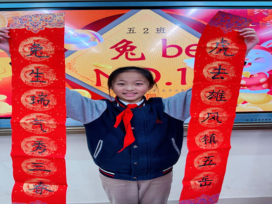 孩子们展示着自己新年里书写的春联,也传递着新一年的美好祝福。