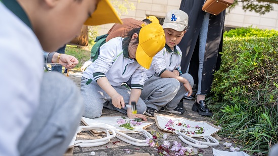 参观过后,小朋友们还在博物馆前的空地上展开了艺术创作。在老师的指导下,小朋友们创造出了各式各样、创意十足的陶土画,也利用周边的一些植物,进行了一场热火朝天的帆布拓印活动,小朋友们玩儿的不亦乐乎。