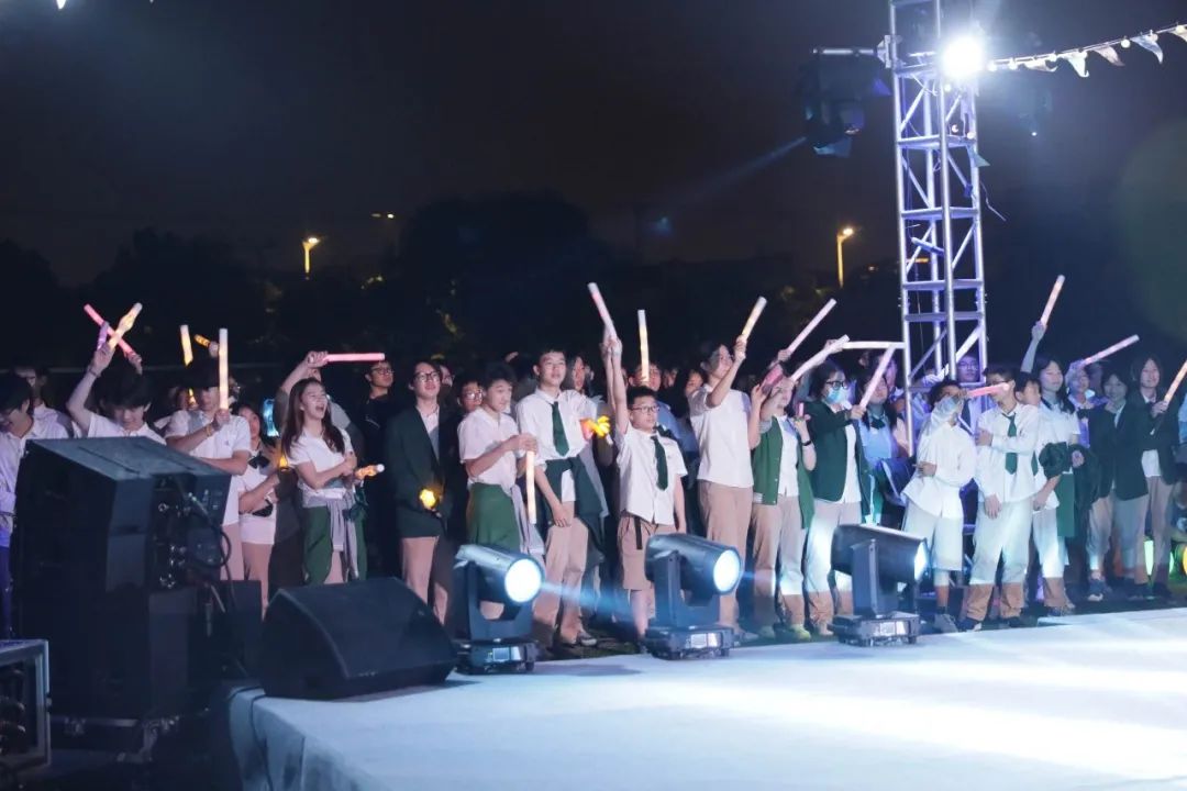 在这个时空里,科外真情随着音乐、伴着荧光恣意流淌。弟弟妹妹在台下翘首以盼的小脸,哥哥姐姐为小朋友们呐喊的热情,老师和家长们的欢欣与鼓舞,都是舞台演出的靓丽背景,共同的记忆与回忆,情感的交流与互动,让音乐会高潮迭起,无与伦比。