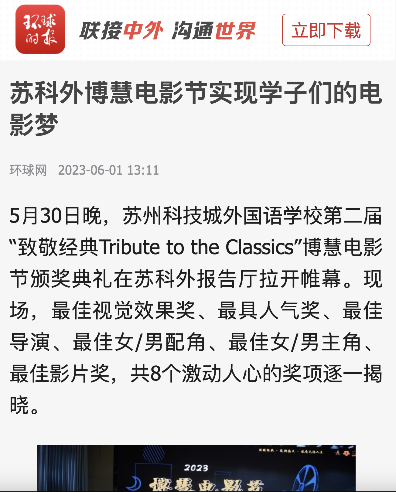 【环球网】苏科外博慧电影节实现学子们的电影梦