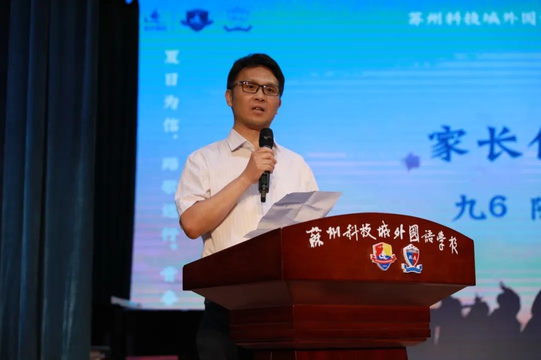 家长代表陈建权先生发言:“亲爱的孩子们,今天份的快乐属于你们,我们为你们三年的成长感到骄傲。接下来你们马上就要奔赴新的征程,借此机会,我想对你们说几句话:一是常怀感恩之心,感恩学校、感恩老师、感恩同学,有时间常回学校看看,有好消息要记着给老师汇报。二是人生路漫漫,一时的得失并不重要,唯努力进取才是正道。走累了可以歇歇,可以抱抱爸爸妈妈。没关系,只要你们心怀梦想,有一颗奋发向上的心,最终的胜利一定属于你们!最后祝福苏科外越办越好,再创辉煌!”