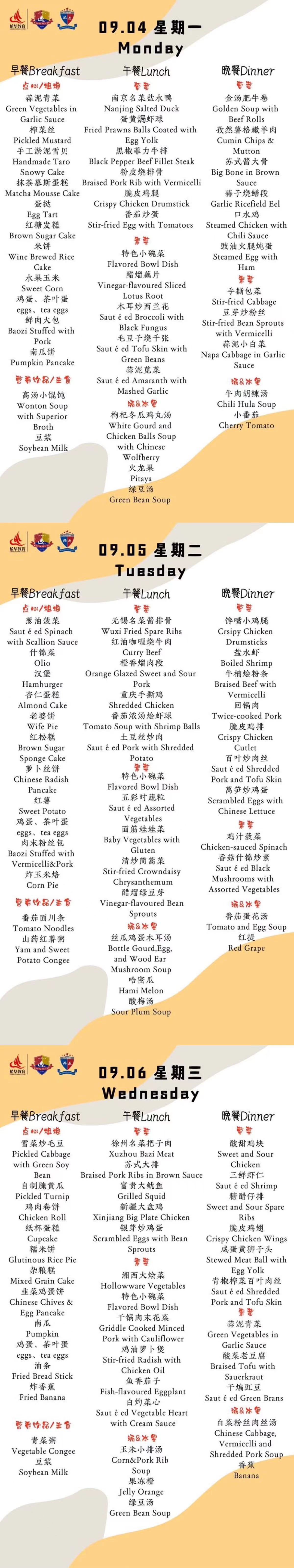 舌尖上的科外&科中丨本周菜单出炉!(9.4-9.10)