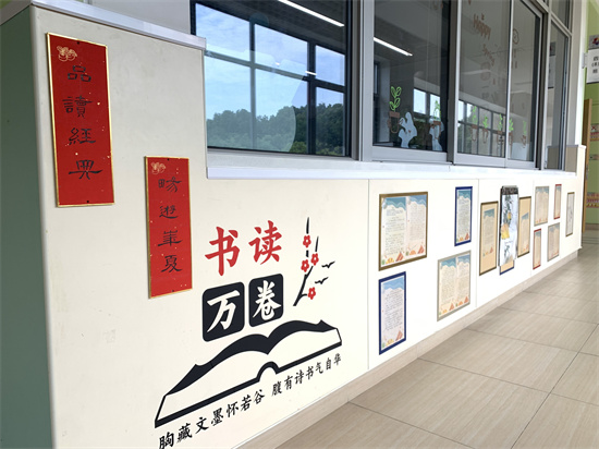 漫步在科外实验楼四楼,你会被“品读经典 畅游华夏”这样字眼,这是班级书法大使Nancy的手笔。
