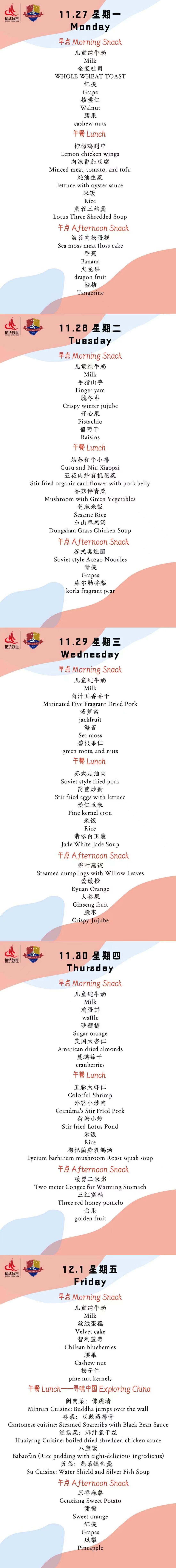 舌尖上的科外&科中丨本周菜单出炉!(11.27-12.3)