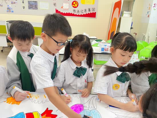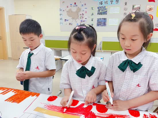 这过程中也展现了孩子们宝贵的合作精神,有些小朋友合作绘画长城,有些小朋友一起完成天安门……这正是我校博慧6C理念当中的合作力,为他们点赞!