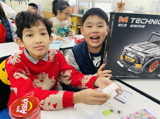 在外教老师的带领下,迎来了2023的惊喜时刻。孩子们抽签决定自己的惊喜派送对象,并用自己的零花钱为对方准备惊喜礼物。很多孩子为了送的礼物能投其所好,偷偷地互相商量了一番,送对方喜欢的东西。