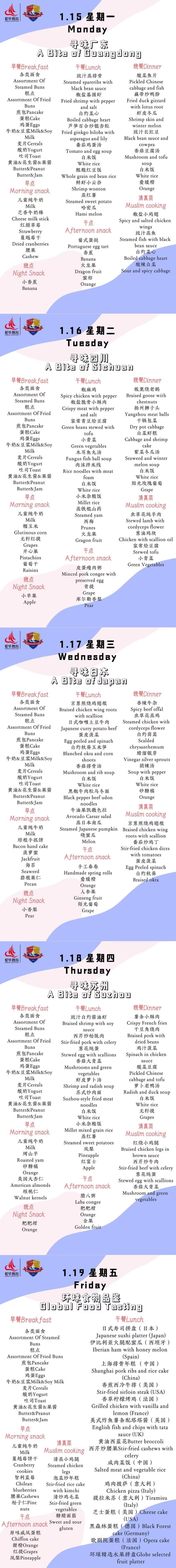 舌尖上的科外&科中丨本周菜单出炉!(1.15-1.21)