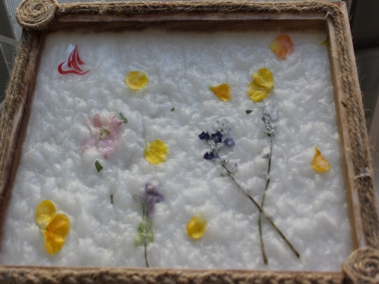 孩子们自己准备了色彩缤纷的干花装饰纸张。每个小组都相信自己小组的纸一定是最与众不同的。