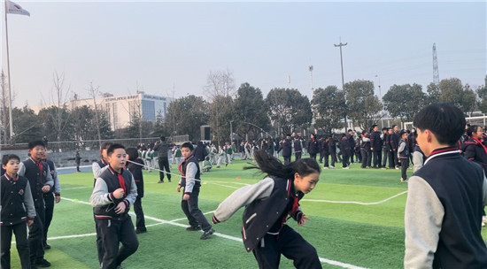 自从运动会铩羽而归,五(3)班的娃就开始更加注重体育锻炼,最后在冬季三项上取得了甩长绳第三名的好成绩。