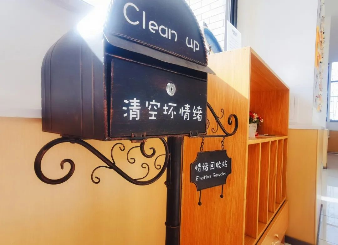 在科外,有一个角落很小,但是很受欢迎,这个地方就是心灵加油站。在这里,学生们可以约上一两个好友来玩一玩游戏,可以带上自己的疑惑打开心灵魔法书寻找答案,可以写下自己的烦恼投入情绪回收站,更可以写下自己的快乐贴到快乐分享墙上共享……这里,有他们自己说故事方式。