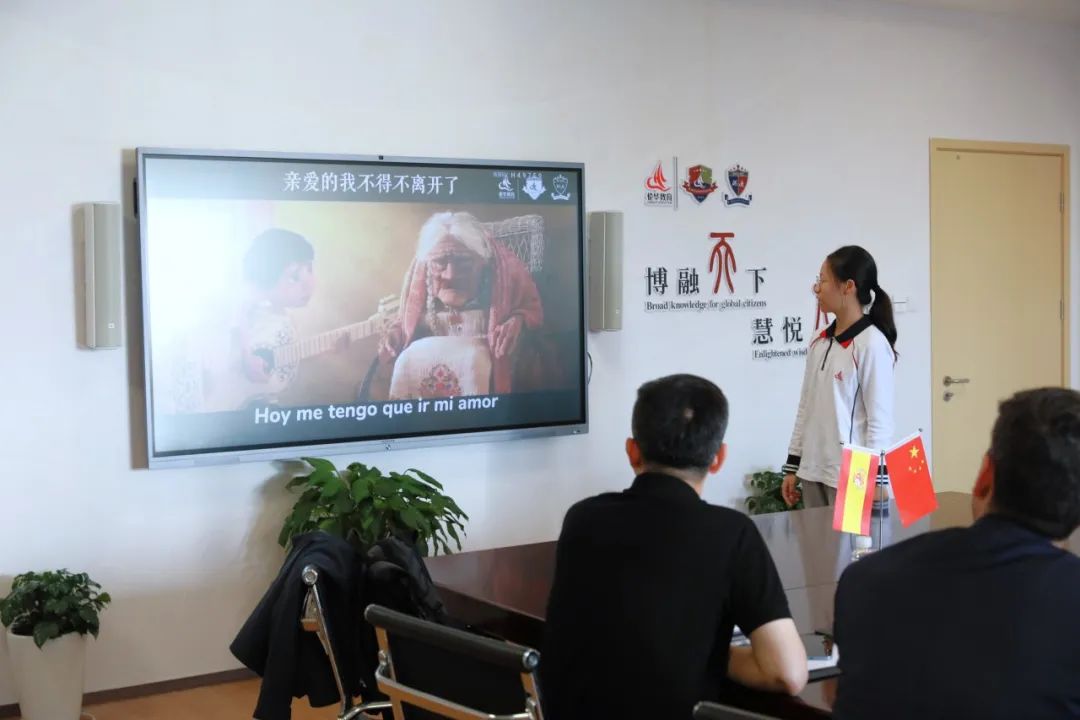 “多语种+”时代下,西班牙语是蒋睿祺选修的又一门外语。她在“五语伦比”多语种日活动中与世界牵手,激发语言学习的兴趣,看到不同文化的美丽魅力。并且,在西班牙学校的两位校长来我校参观访问时,她代表学校接待交流,绘声绘色地演绎了《寻梦环游记》里的一个片段,牢牢抓住语言实践与运用的机会。