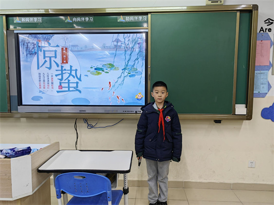 惊蛰,是二十四节气中的第三个节气,每年3月5日或6日,太阳到达黄经345度时为惊蛰。惊蛰的意思时天气回暖,惊醒蛰伏于地下冬眠的昆虫。惊蛰在历史上曾被称为“启蛰”。《夏小正》曰:“正月启蛰”。至今的汉字文化圈中,日本仍然使用“启蛰”这个名称。经过历史的变迁,惊蛰这一说法被沿用至今。董煦同学作为班级的节气大使,为同学们带来了有关“惊蛰”的节气习俗介绍,让同学们对这个节气有了更加具体直观的认识。