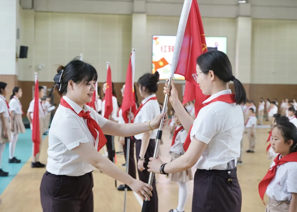 星星火炬指引方向,红红领巾系满理想。我们相信,新队员们一定会牢记红领巾的责任,学习先锋模范精神,肩负时代赋予的使命,手握红色接力棒,传承红色基因,争做新时代好队员。