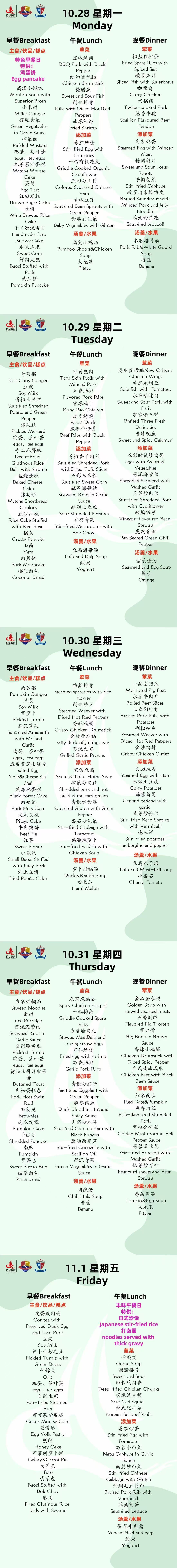 舌尖上的科外&科中丨本周菜单出炉!(10.28-11.1)