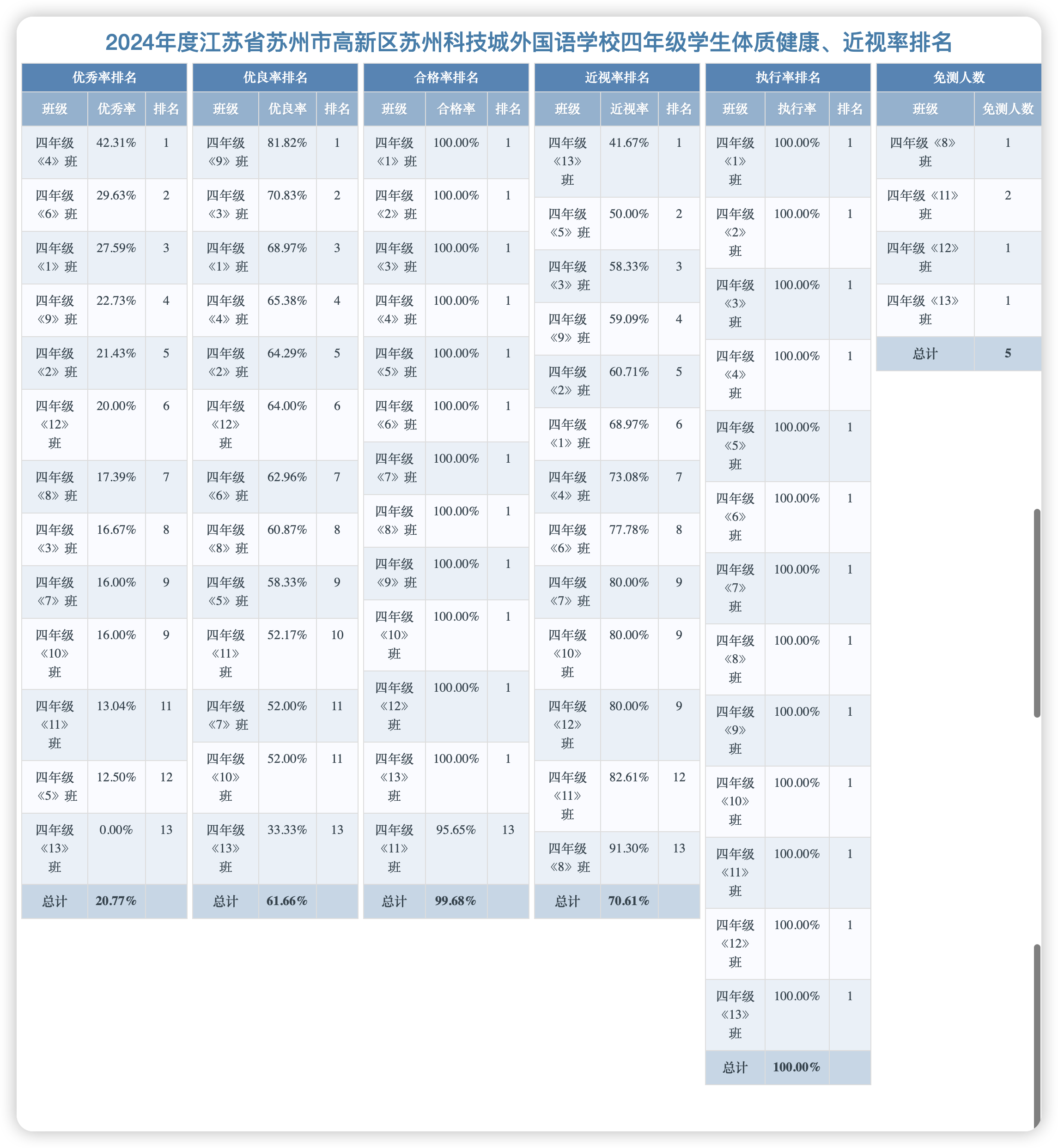 苏科外小学部学生体质监测排名及三好生体质监测情况公示