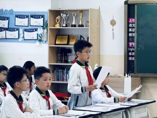 今日,一场火花四溅的思想盛宴在校园热烈上演!五 3 班与五 12 班的同学们围绕 “故事中的主角是否应该完美” 这一辩题展开激烈辩论,双方辩手以敏锐的思维、犀利的言辞,为观众带来了一场精彩纷呈的思辨对决。