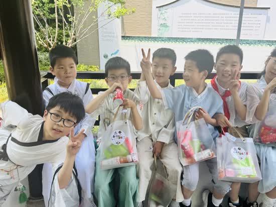中午时分,阳光洒满校园,具有苏州园林特色的亭子前早已热闹非凡。小朋友们身着各式各样的汉服,宛如从古代画卷中走出的小精灵。他们或站或坐,在古色古香的亭台楼阁间合影留念,笑声回荡,一幅幅画面美不胜收。