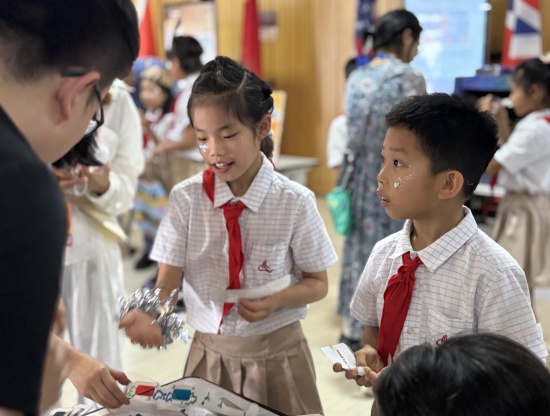 在特别环节中,外教与学生们共同呈现了关于昼夜现象的跨文化研究成果,孩子们通过实物演示和趣味互动游戏,自信地当起了"小老师",带领家长们在玩中学,充分展现了项目式学习的深度与乐趣。