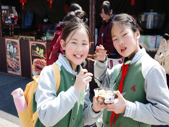 在华谊兄弟电影世界的春游中,我们的味蕾也随着探险一起飞扬。同学们在品尝当地特色小吃的同时,享受着彼此的陪伴和春日的暖阳,每一张笑脸都是对这次春游最好的肯定。