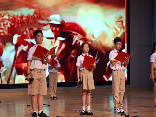 为呈现完美效果,两个班级的同学从两周前就投入紧张筹备。幕后团队分工明确。仪式当天,当五星红旗冉冉升起,六年级的同学领唱的国歌格外嘹亮。国旗下讲话中,学生代表结合先辈事迹与自身经历,讲述强国梦想,赢得全场掌声。诗歌朗诵,语言铿锵有力,深深感染着同学们。